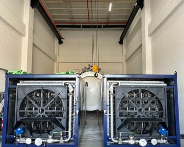 AYZ Kriyojenik olarak 5000 Nm3/h'e kadar gaz geçişine uygun 40 bar ve 400 bar olarak iki tip evaporatör tasarımlarımız mevcuttur.